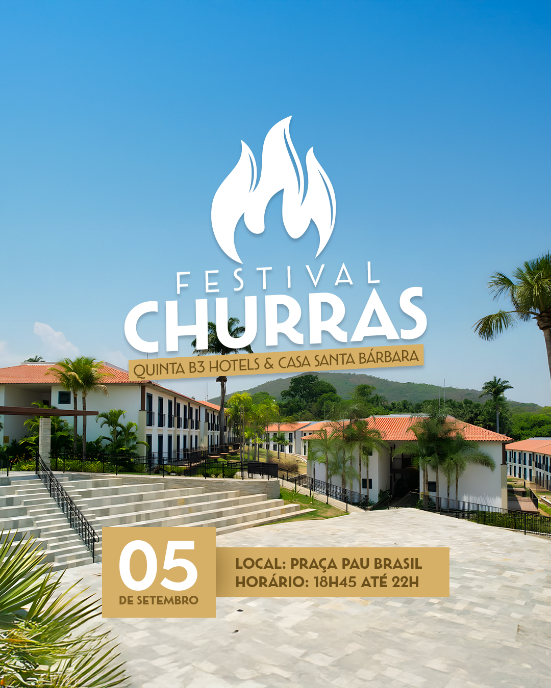 O Festival Churras Quinta Santa Bárbara 2025 será uma experiência gastronômica única, pensada especialmente para nossos hóspedes. Um encontro onde a tradição do churrasco se une ao requinte da hospedagem de alto padrão em Pirenópolis.